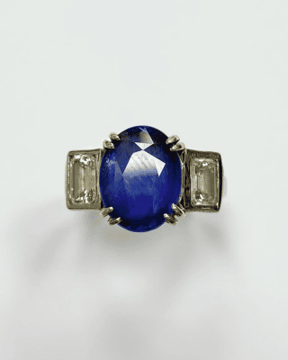 Saphir avec diamants baguettes