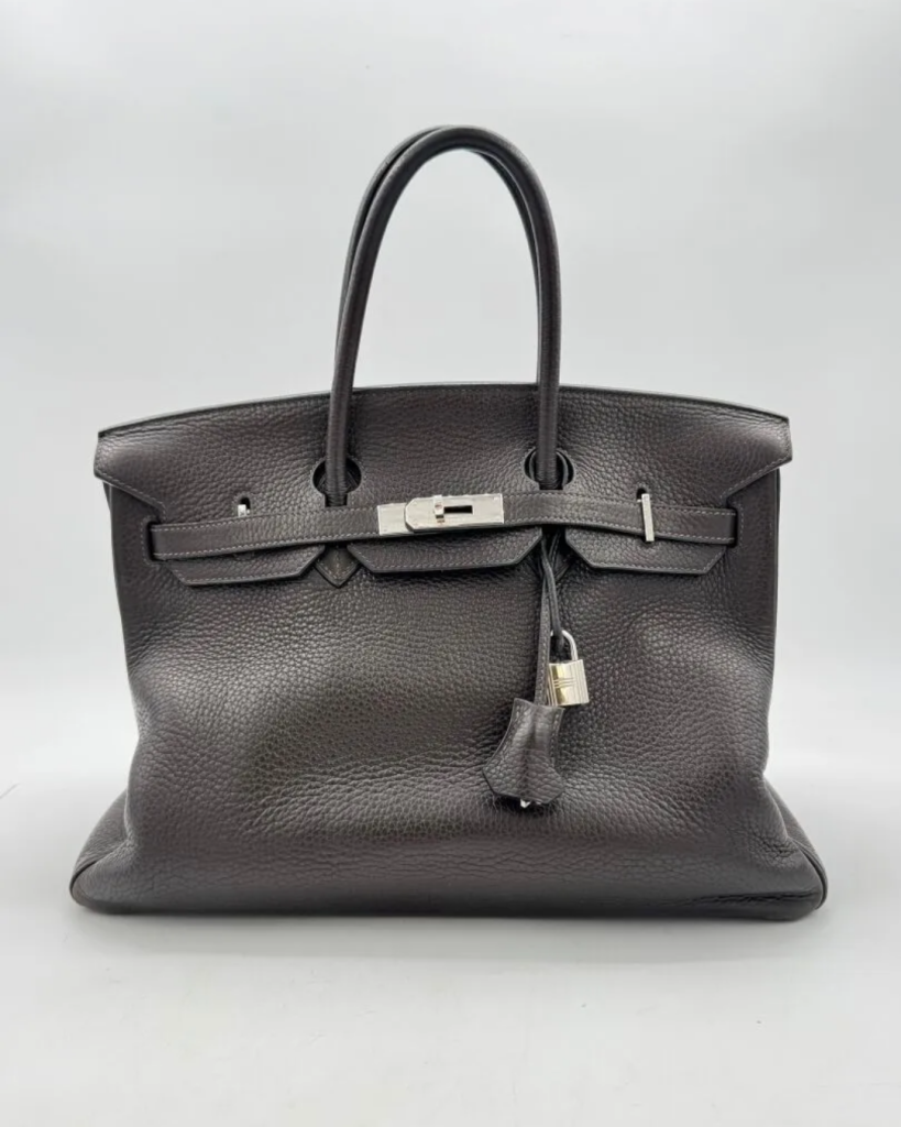 HERMES PARIS Made in France Sac BIRKIN 35 cm en taurillon Clémence chocolat, bijouterie en métal palladié : cadenas et deux clés Avec sac de protection de la marque et facture datée du 24 décembre 2005 de la boutique de Marseille (quelques usures aux angles)